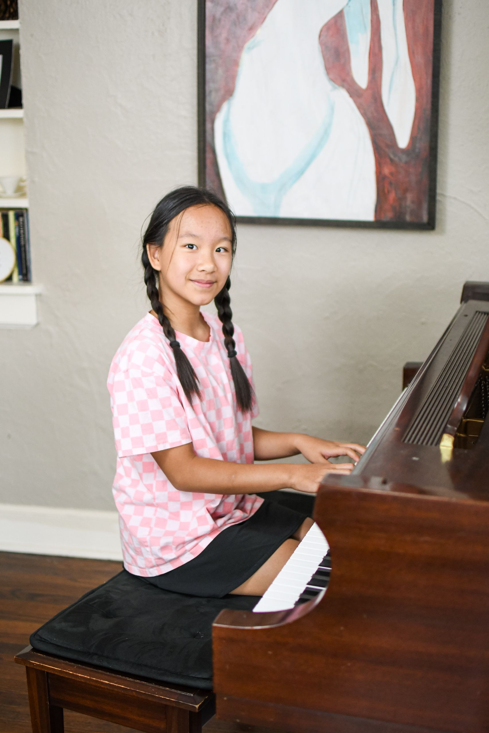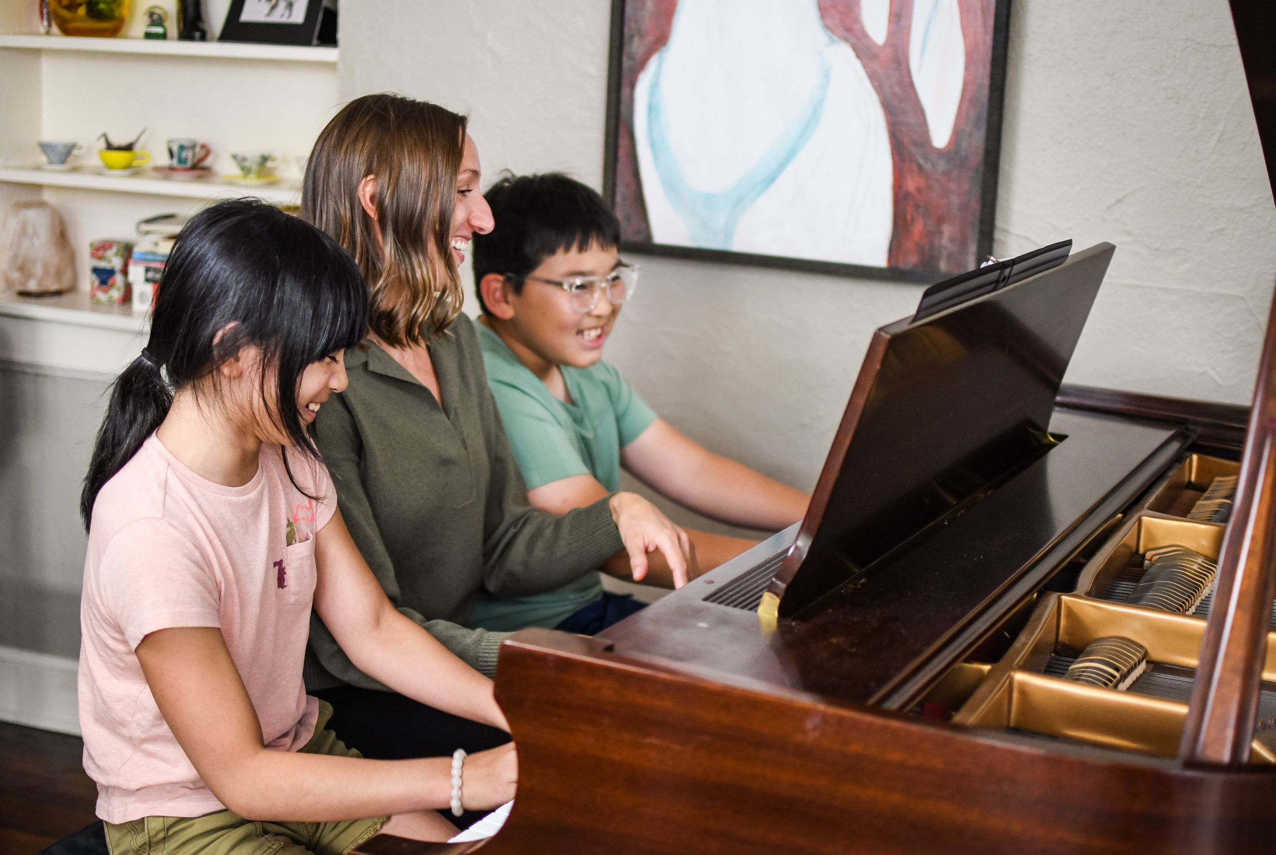 An acoustic piano is ideal, however, students may start with a digital piano as long as it has 88 weighted keys and a sustain pedal. Advanced students must have regular access to an acoustic piano in good working condition. Small students may need a footstool and cushion for the bench.